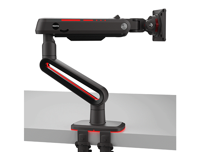 Take control of your desktop with DMG heavy-duty gaming monitor arm. DMG confidently supports displays from 32″ to 60″ up to 44 lbs, allowing for effortless on-the-fly movement for seamless screen positioning. With 10.2″ of spring-assisted vertical lift, full swivel capabilities, and a ratcheting tilt mechanism that keeps your monitor in place, you can easily dial in the perfect viewing angle for intense gaming sessions or creative work. Switch between portrait and landscape modes in an instant with 360° of monitor rotation, bringing flexibility to your battle station. DMG’s multi-mode RGB lighting lets you match the vibe of your rig or your room, empowering you to personalize your space. Installation is a hassle-free affair thanks to a detachable VESA plate that lets you attach your monitor with a click, and generous cable management that snaps into place.