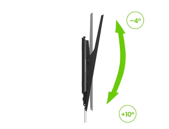 T300 low profile tilting TV mount combines sleek design with heavy-duty performance, supporting TVs up to 150 lbs and VESA patterns up to 800×600. Despite accommodating larger displays, it maintains a low-profile of 1.8” for a clean, modern look. Its leveling adjustments and extra-wide wall plate allow precise TV positioning, while quick-release arms and an open-frame design streamline servicing and cable management. With 10° forward and 4° backward tilt adjustments, T300 lets you optimize viewing angles with ease. Whether you’re upgrading your home theater or wall-mounting a display in a conference room, T300 offers the ideal blend of form and function for any setup.